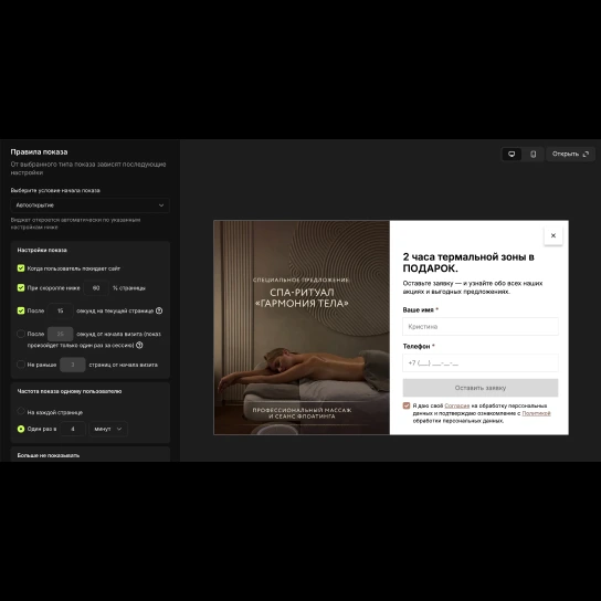Совершенно новые виджеты с продуманным конструктором и гибкими визуальными настройками. Вы можете увеличить конверсию своего сайта за 10 минут