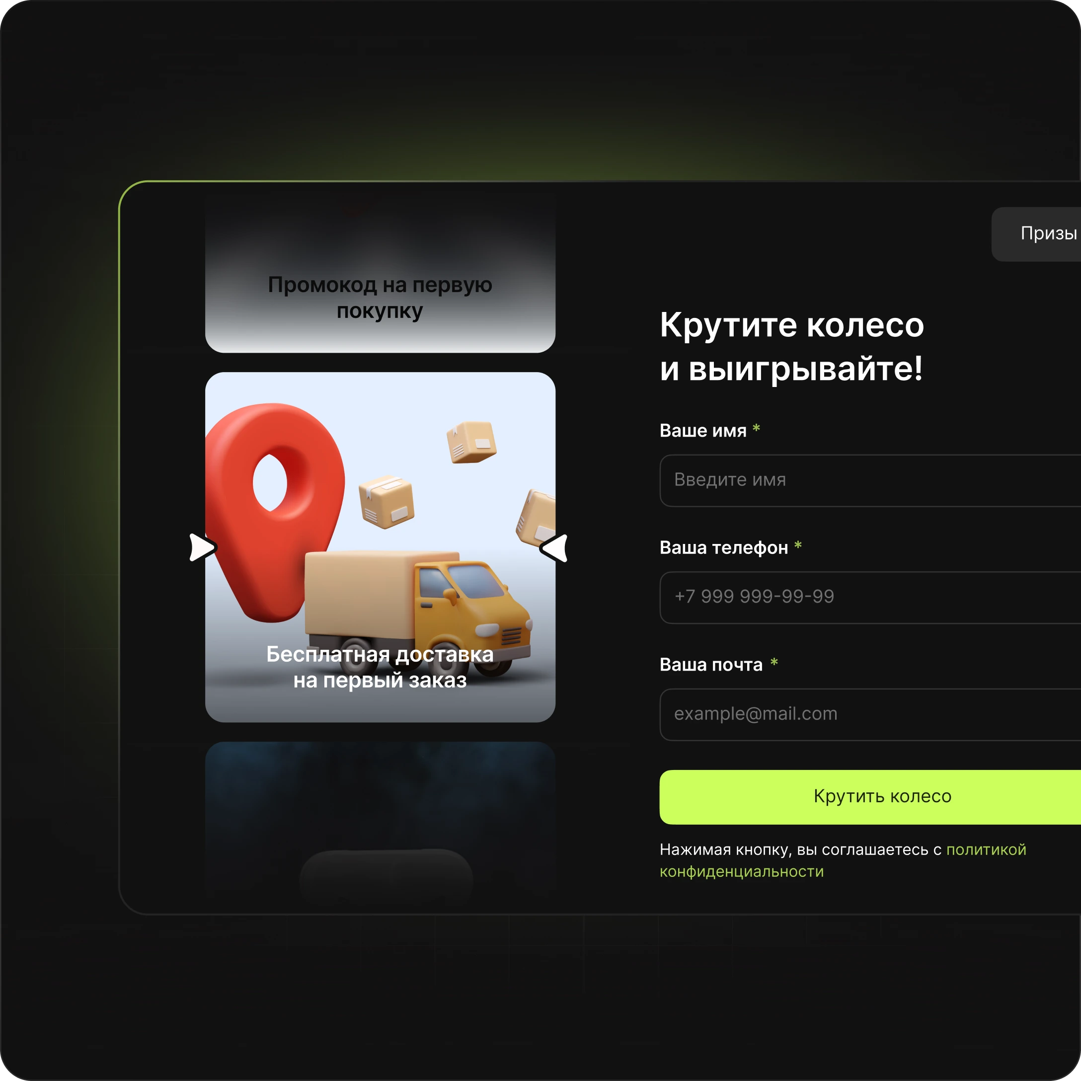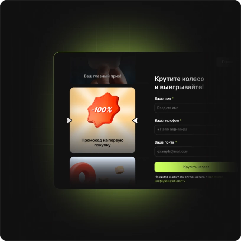- Маркетинг — акции, квизы, лид-магниты.