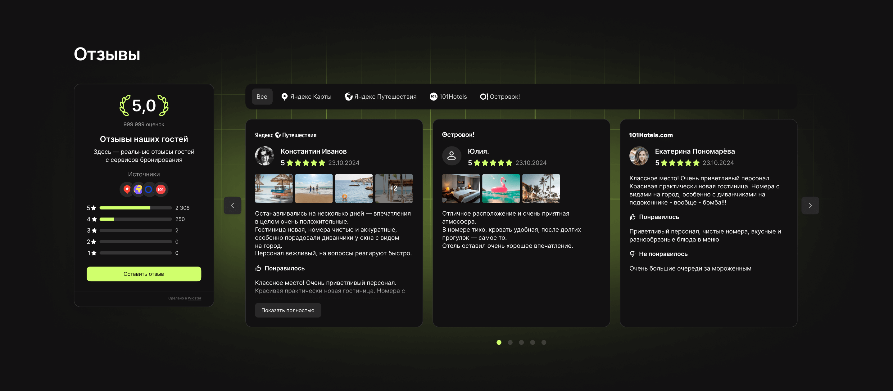 - Отдельная страница с подробной подгрузкой отзывов — на её основе можно создать раздел «Все отзывы».